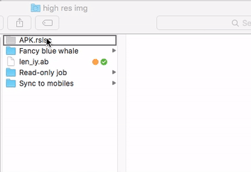 To get a file downloaded right-click on it and pick "Sync to this device" menu (bulk selection is possible), or double click on a file. When a file is synced, the .rsl~ extension gets removed. Fully synced files are marked with a green checkmark.