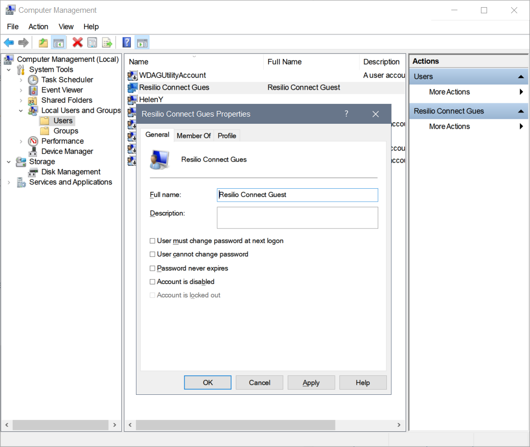 - Create a new User called “Resilio Connect Guest”, a new Group called “Resilio Connect Guests”.