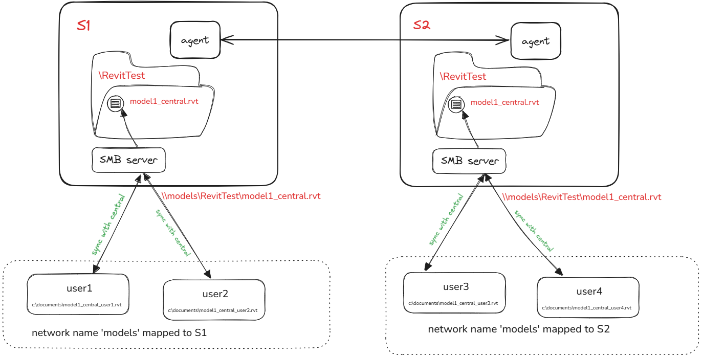 Main model is available for reading while being synced with the local model (RW:R lock), so the Agent can transfer the content of the file while it is still being modified.