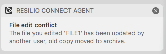 Even though Resilio Active Everywhere is not specifically designed to track file collisions - file being edited at the same time on different computers, there's a way to be informed if that has happened.