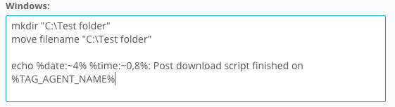 When files are delivered to a Windows workstation, they need to be moved to another location. We can specify commands: