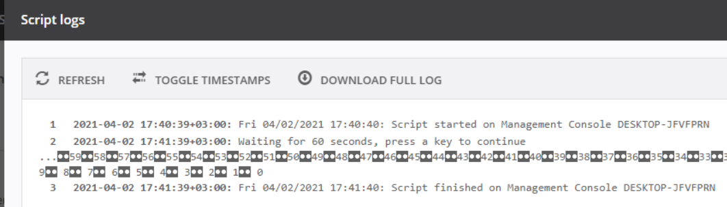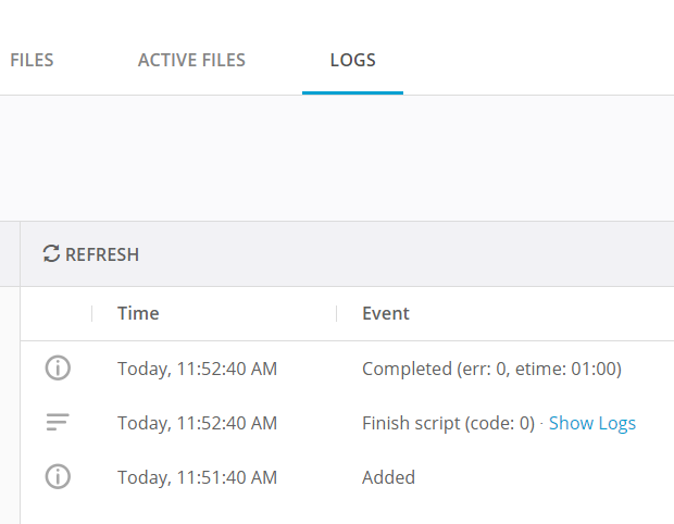 Script execution, either successful or not, is recorded in a log. This log is available in Job run details -> Logs. Detailed information is available by clicking the 'Show Logs' link.