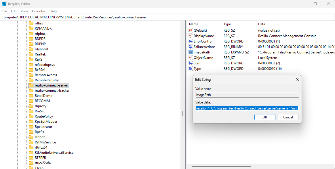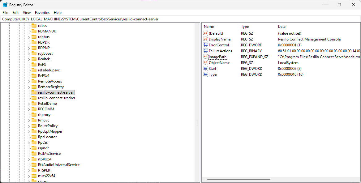 Computer\HKEY_LOCAL_MACHINE\SYSTEM\CurrentControlSet\Services\resilio-connect-server