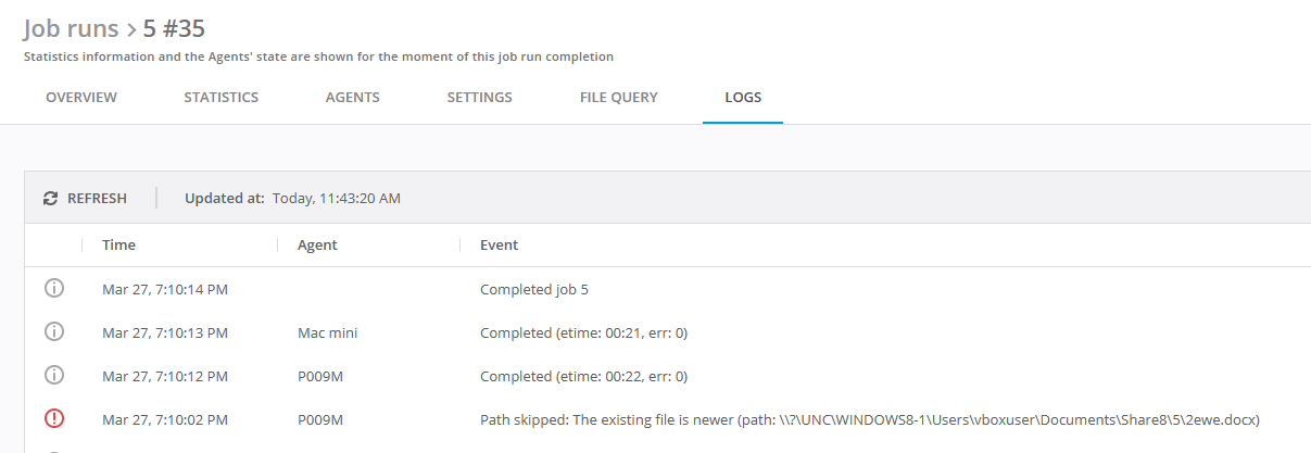 - Skipped files remain on the source if the job is configured to remove files from source after transfer.