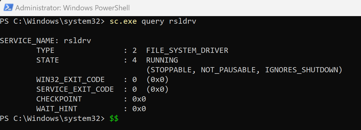 elevated Command Prompt or PowerShell using the command: sc.exe query