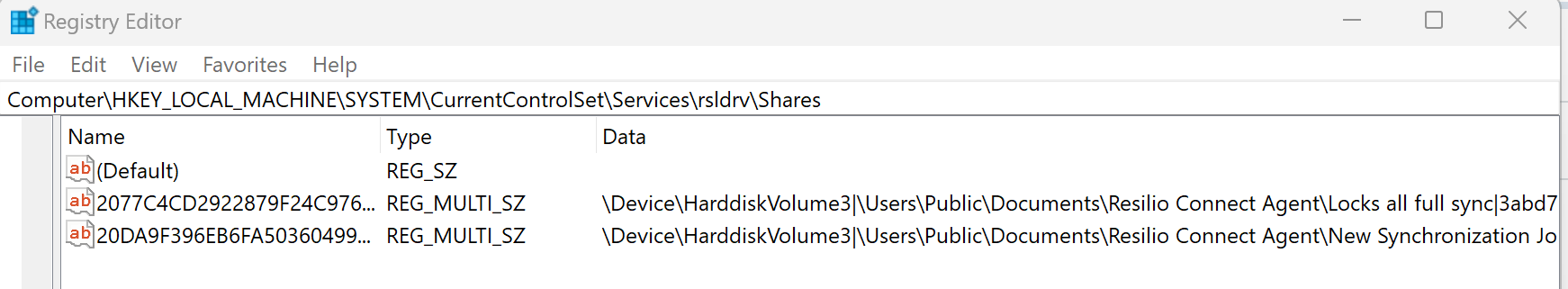 (HKEY_LOCAL_MACHINE\SYSTEM\CurrentControlSet\Services\rsldrv\Shares).