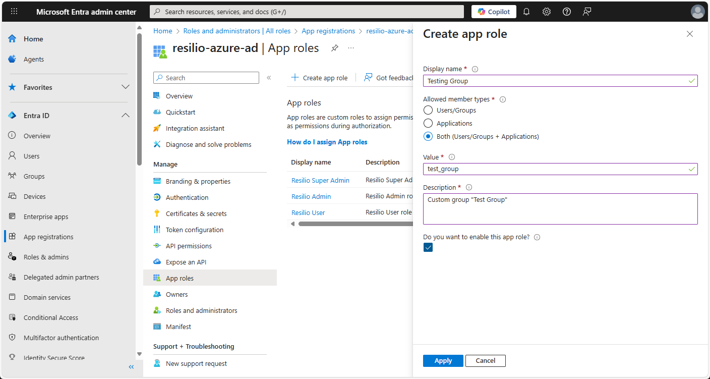 . - In Microsoft Entra admin center, create a role with such value and assign it to the users.