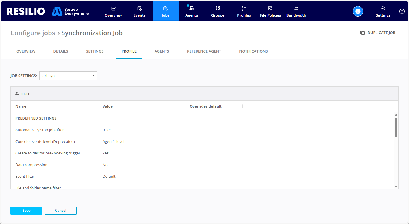 A profile is a set of configuration parameters that control Agents' behavior in the Jobs they participate in. Agent's behavior in the context of a specific Job is determined by the combination of both the Job Profile and the Agent Profile settings.