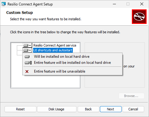 Place the Agent’s configuration file in the same folder as the MSI installer, then run the installer. When selecting options, make sure to select the UI shortcuts and autostart option.