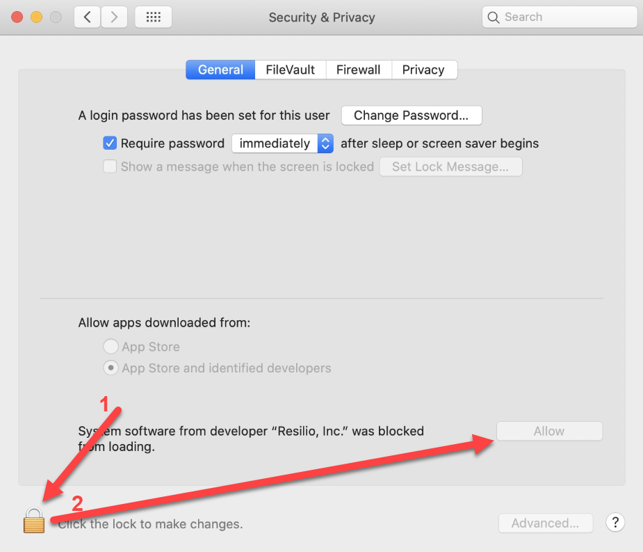 - Click Allow for the blocked system software from Resilio, Inc.