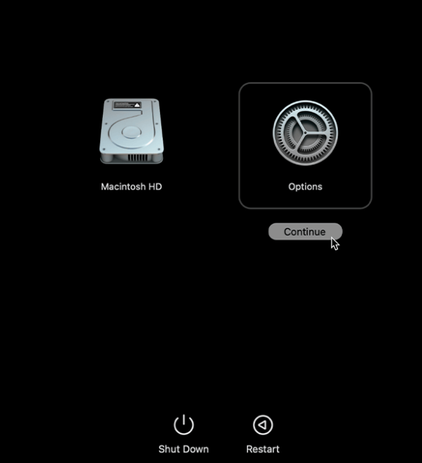 appears next to "Macintosh HD." Select "Options" to proceed.