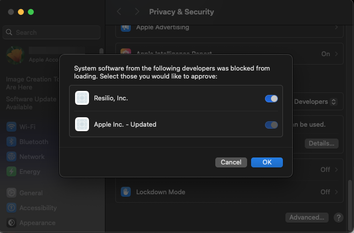 Resilio System Kernel Extension Blocked on macOS: enable kernel extenstions