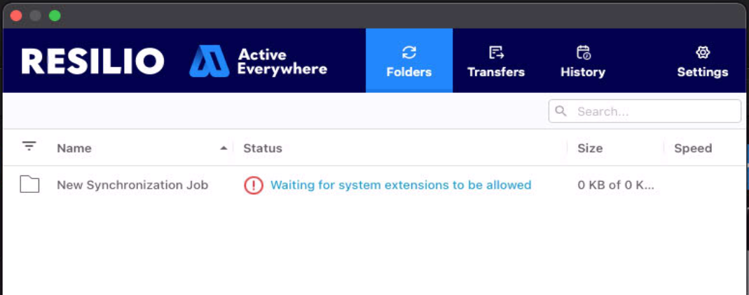When the Agent is launched for the first time and a job with Transparent Selective Sync is added, macOS will prompt the user to approve the necessary system extension. Until the extension is allowed, error "Waiting for system extensions to be allowed" shows up on a TSS folder.