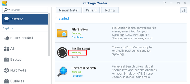 - Download the Resilio Active Everywhere Agent package specific to your DSM version. Note: For DSM 6, make sure to download a Resilio Agent package dedicated to your hardware architecture. For information on how to identify the hardware architecture of your Synology NAS, see What kind of CPU does my Synology NAS have?