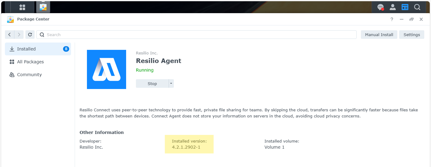 This article will assist you with an agent upgrade for Synology. This process is applicable to Resilio Active Everywhere 2.12 and newer.