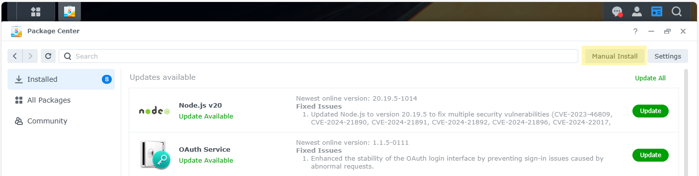 Download the appropriate package for your Synology architecture. List of all architectures to verify can be found here.