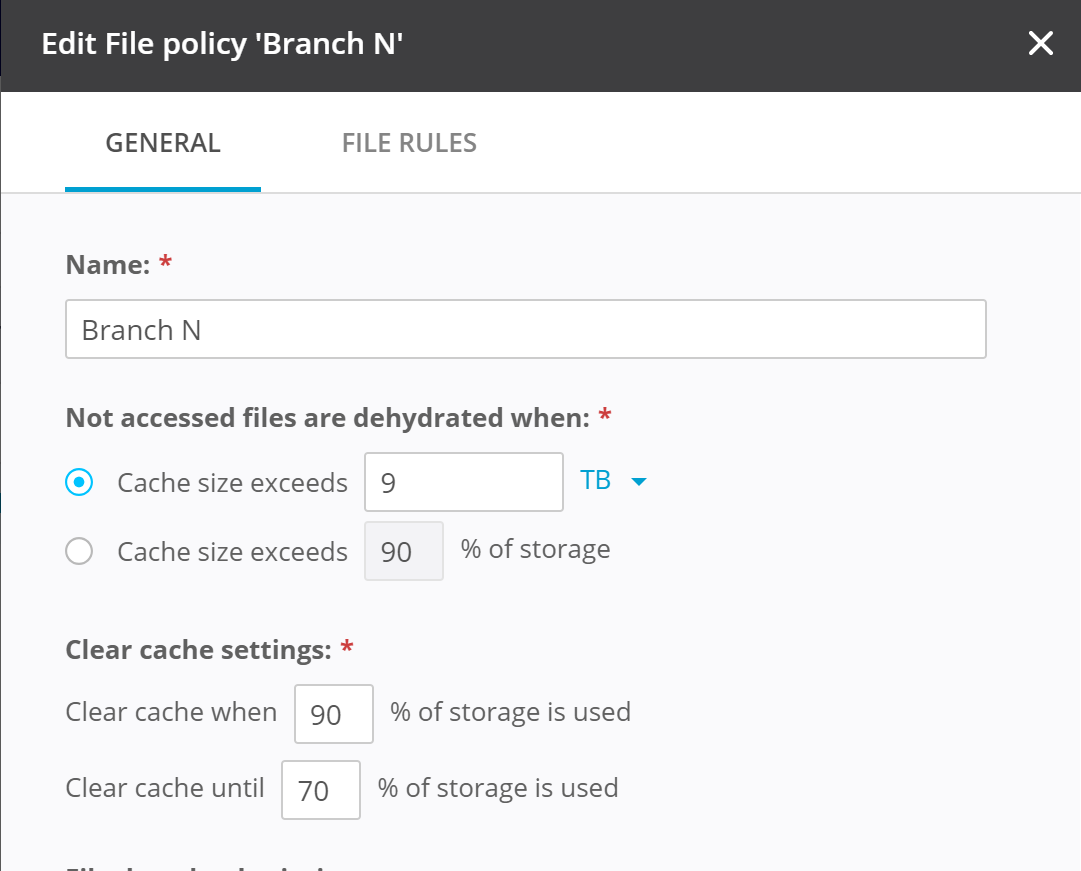 File policy is a set of rules to manage a cache of files in File cache and Hybrid work dataflows. Its is available starting with Resilio Active Everywhere Platform v4.0.