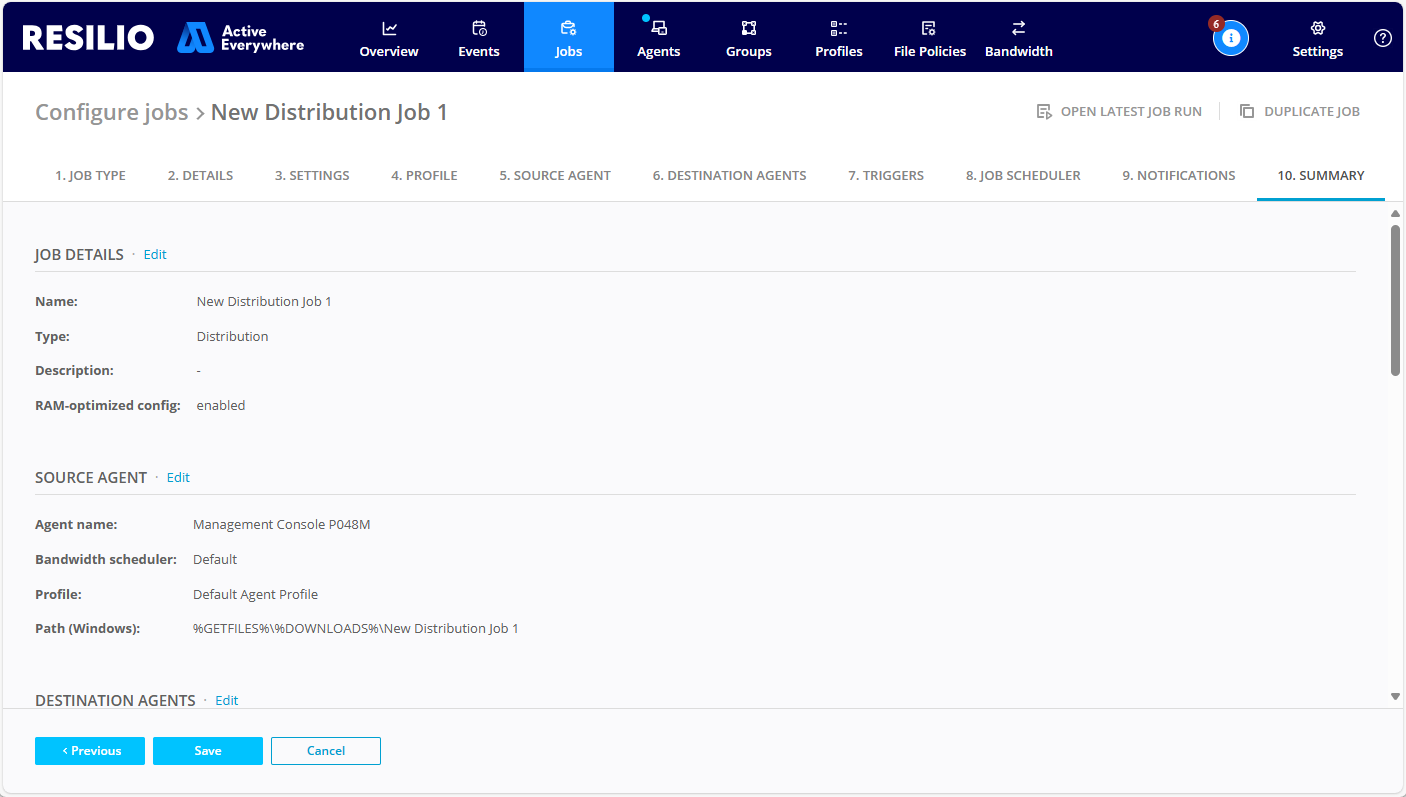 On the SUMMARY tab, verify your Job's configuration, then click Save.