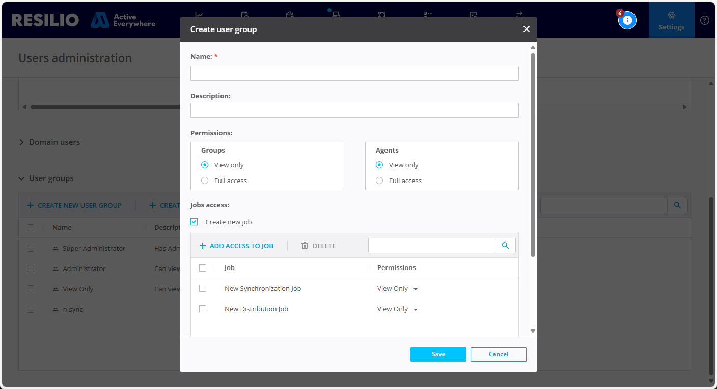 - Super Administrator - has full access to all objects in Management Console: agents, jobs, groups, as well as settings, API, logging, backups, schedule, cloud storage, etc. Additionally SuperAdmin can create, edit and remove other users and user groups.