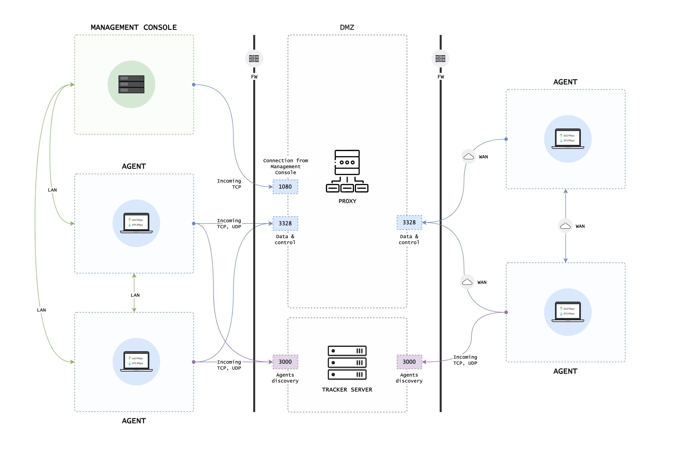 | No (internal) | 3839 | TCP/UDP | Data traffic between Agents inside LAN |