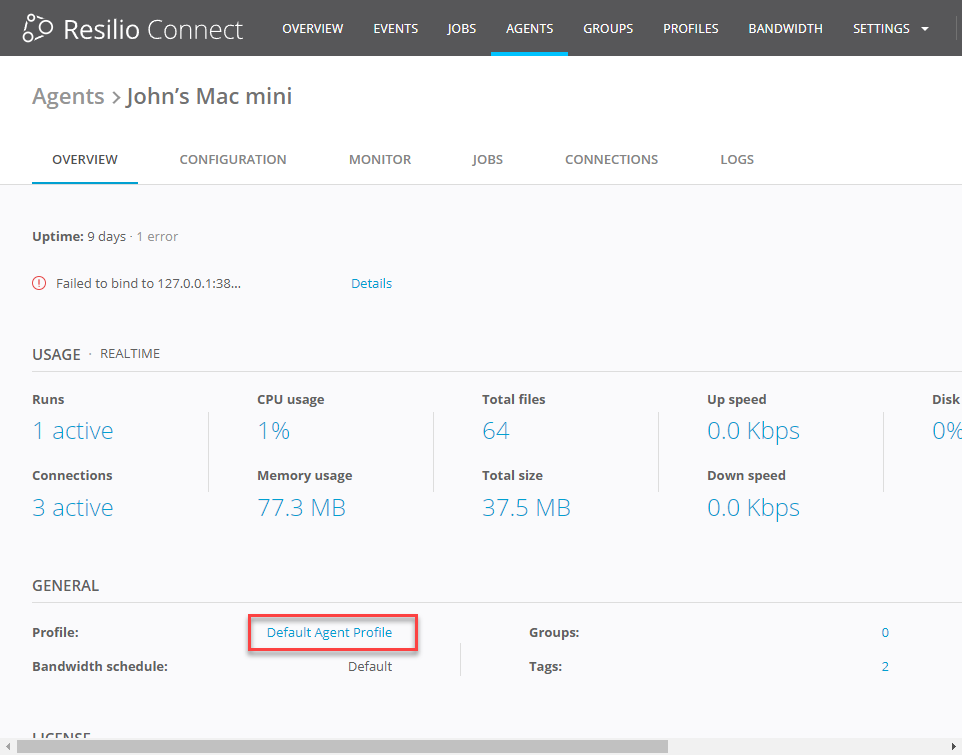 Enable debug logging in the Agent Profile. To do it, locate the Agent showing