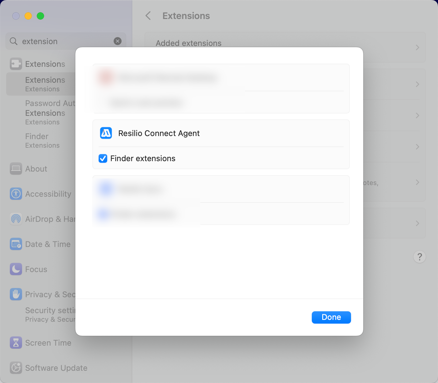 - Uncheck Finder extensions for Resilio Connect Agent.