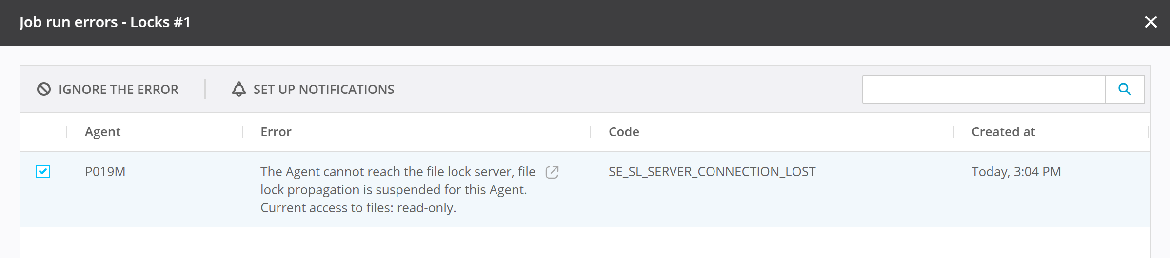 The Agent cannot reach the file lock server, file lock propagation is suspended