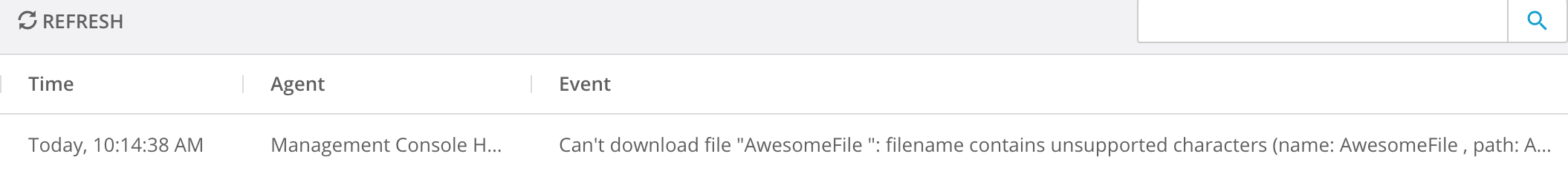 and also looks correctly in FILES tab for the agent, even though has status 'Bad name'