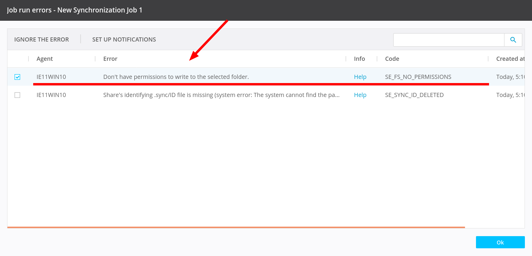 Error code: SE_FS_FILE_PERMISSIONS_ERROR.