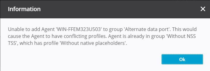 This message pops up when a client is assigned to two groups having the same folder with different access permissions. To avoid permission conflicts, make sure you don't assign a client to groups having the same folder(s) with different permissions.